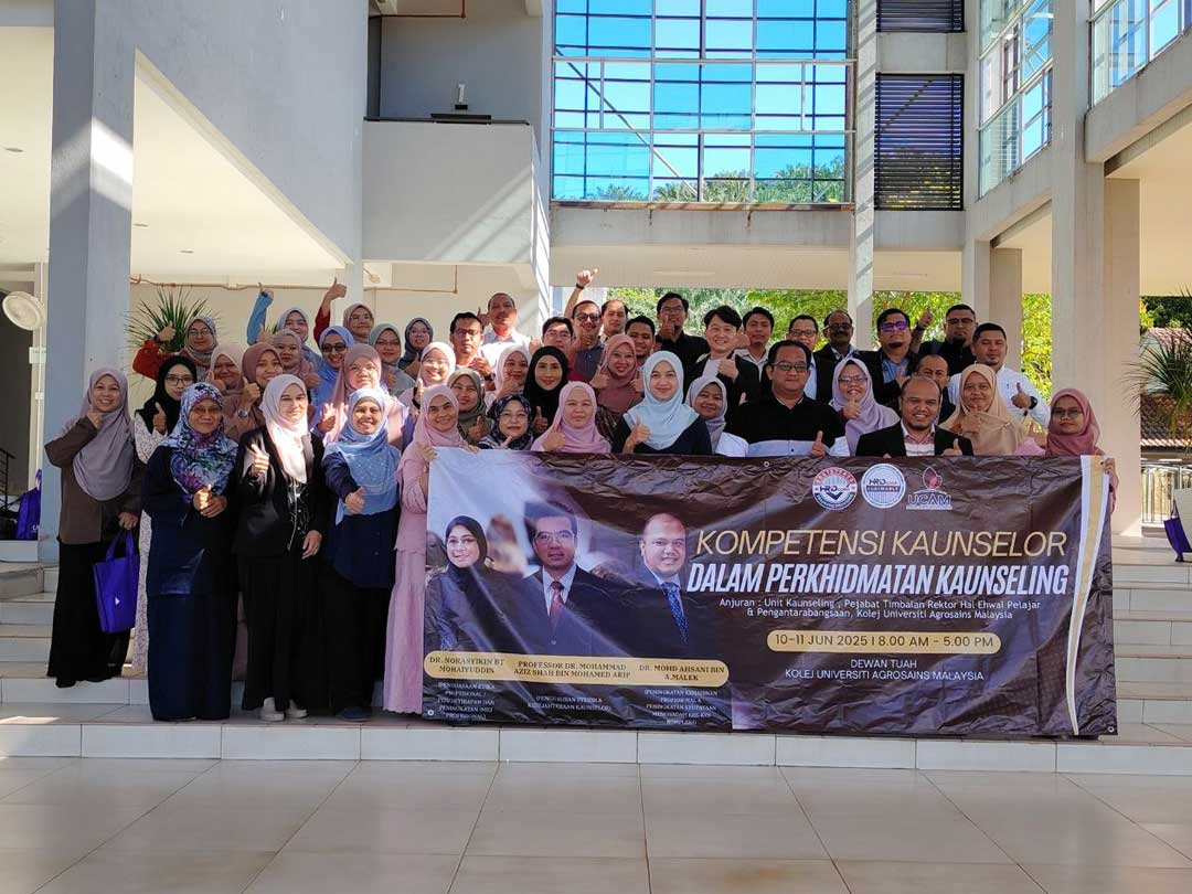 Sekitar Program Kompetensi Kaunselor Dalam Perkhidmatan Kaunseling anjuran Unit Kaunseling, Pejabat Timbalan Rektor Hal Ehwal Pelajar, Alumni dan Pengantarabangsaan UCAM, telah berjaya diadakan pada 10 dan 11 Jun 2025 di Dewan Tuah, Kolej Universiti Agrosains Malaysia (UCAM).