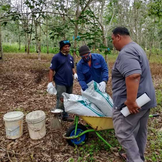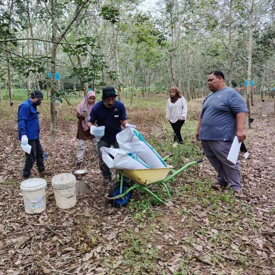 Seiring dengan Kajian di bawah Geran Kursi Mat Isa Pandak Mat Aris yang sedang dilaksanakan bersama Dr Mohd Syafik dan team , iaitu mengenai Aplikasi Baja Organik BBOE ke atas Tanaman Getah sebagai Langkah Tambahan Dalam Kawalan Penyakit Luruhan Daun Pestalotiopsis, sesi pembajaan ini turut menjadi platform untuk menilai keberkesanan baja berkenaan serta memberi pendedahan kepada pekebun kecil mengenai potensi penggunaannya di lapangan.